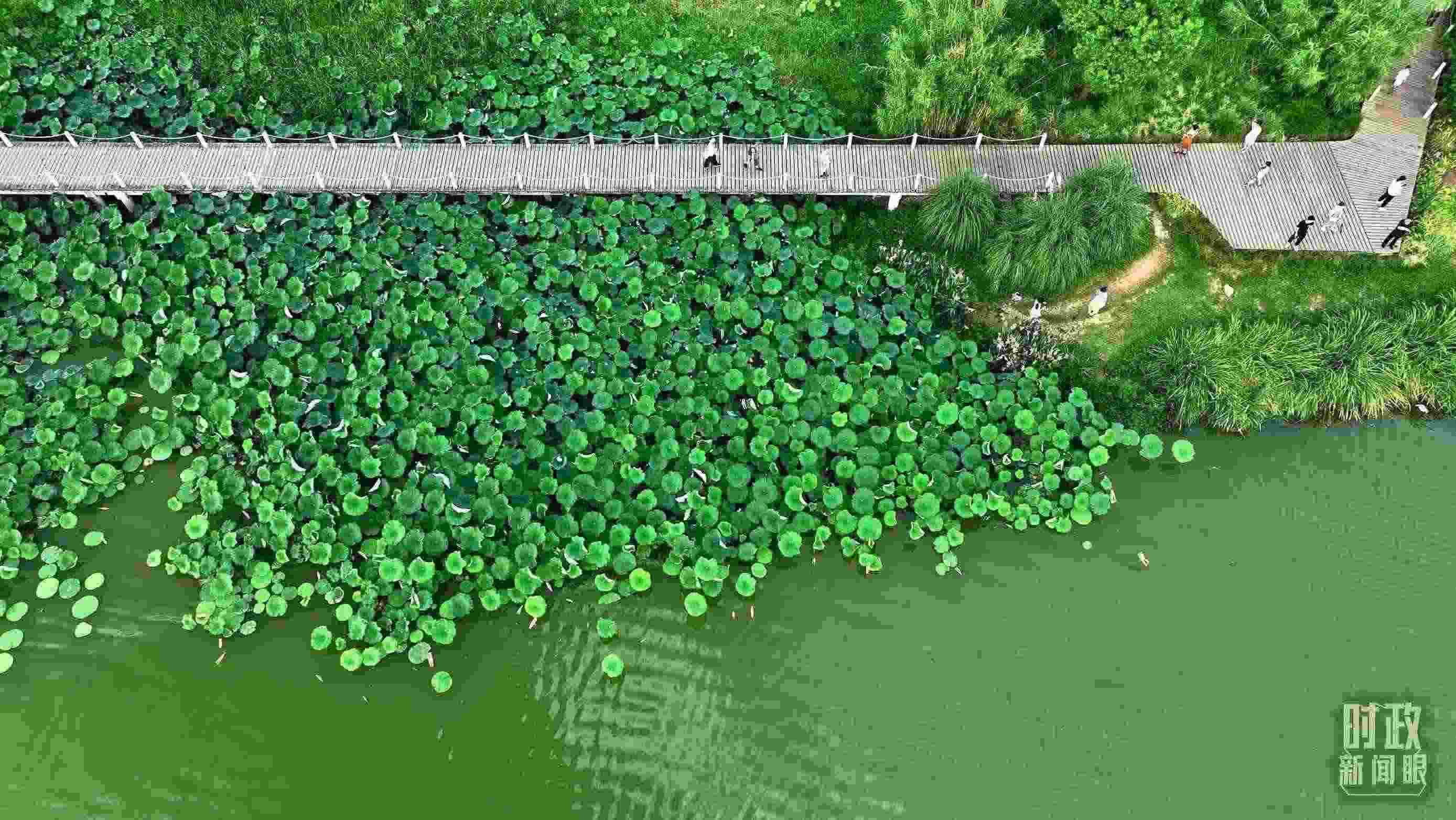 △天漢濕地公園內(nèi),游人穿行,荷影婆娑。(總臺(tái)記者劉海濤拍攝)