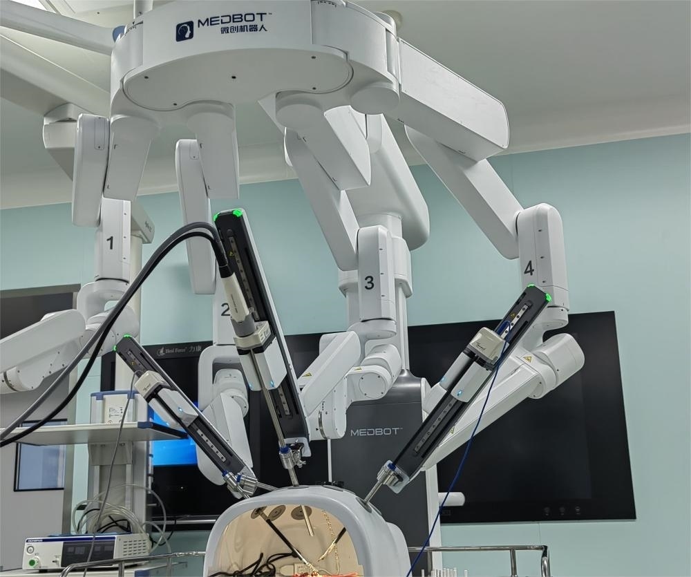 患子宮肌瘤合并貧血的王女士近日在銀川一家醫(yī)院接受了全子宮切除微創(chuàng)手術(shù)。解剖、分離、切割、縫合等各項精細手術(shù)動作都由機器人的4條機械臂操作。