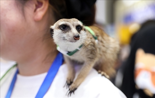 上海,第25屆亞洲寵物展覽會(huì)上的狐獴。本屆展會(huì)自8月16日舉辦,為期5天,吸引來自寵物食品、寵物服裝、寵物用品、寵物醫(yī)療、寵物智能產(chǎn)品等領(lǐng)域的2000余家展商參展。
