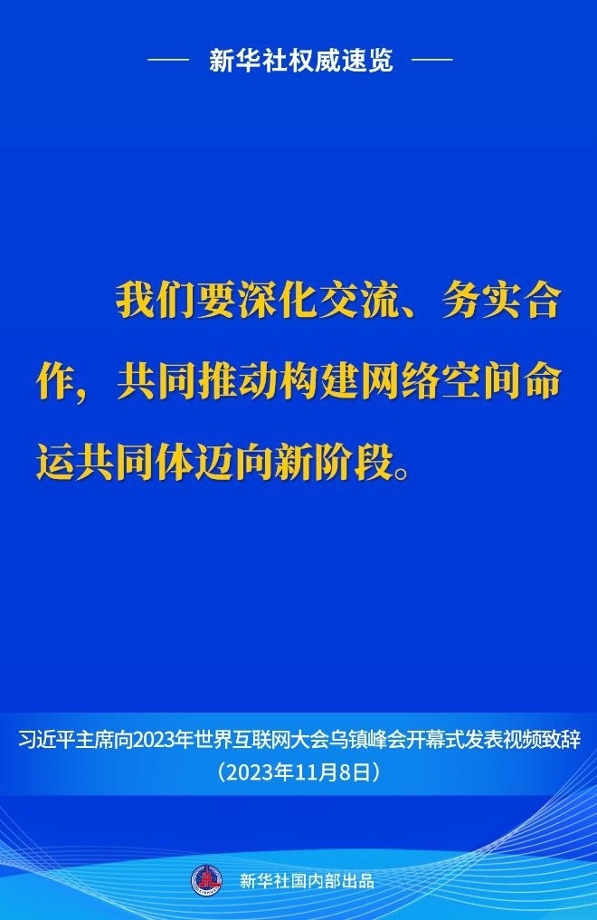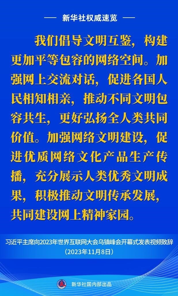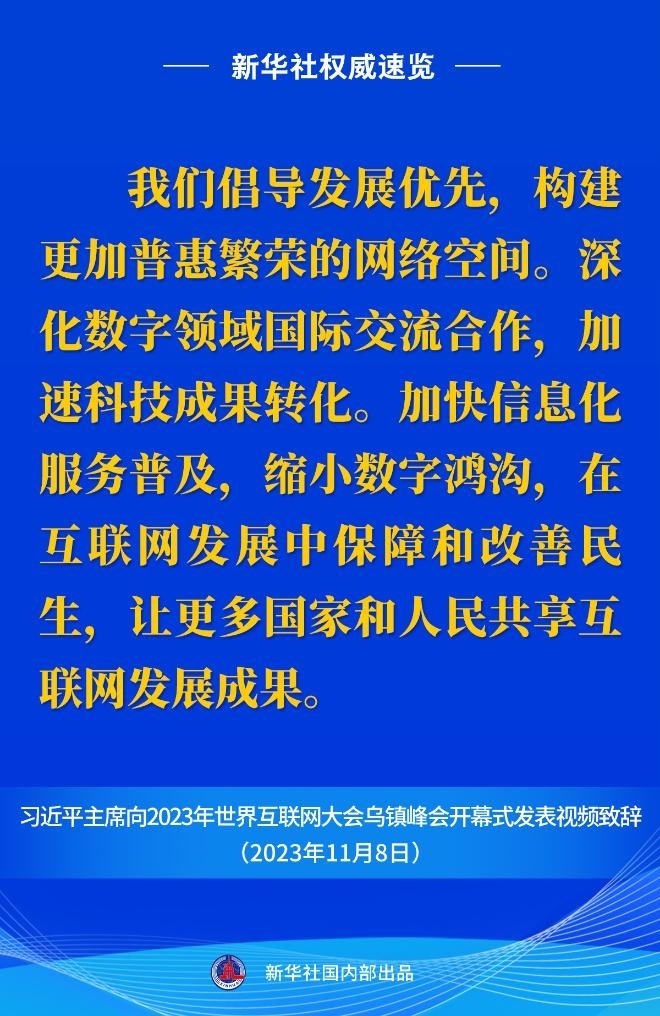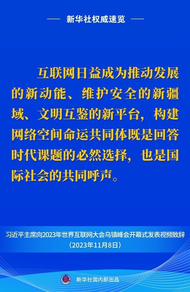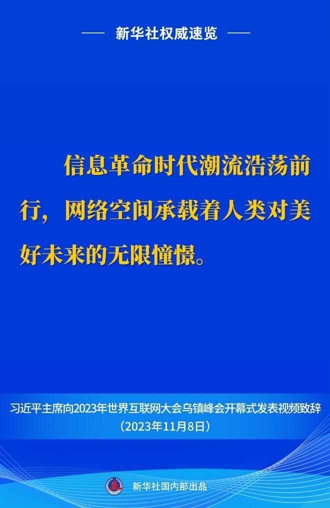 習(xí)近平主席向2023年世界互聯(lián)網(wǎng)大會(huì)烏鎮(zhèn)峰會(huì)開幕式視頻致辭金句
