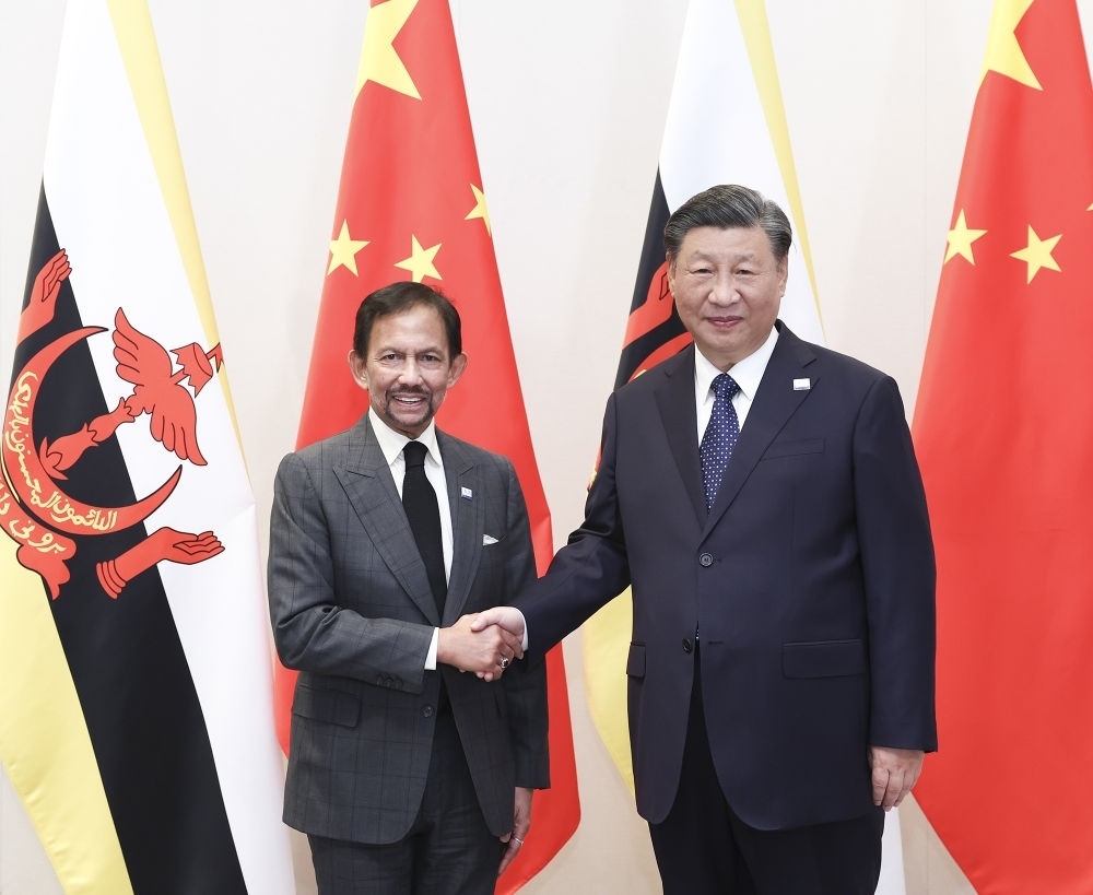 當(dāng)?shù)貢r間11月16日下午,國家主席習(xí)近平在舊金山會見文萊蘇丹哈桑納爾。新華社記者 姚大偉 攝
