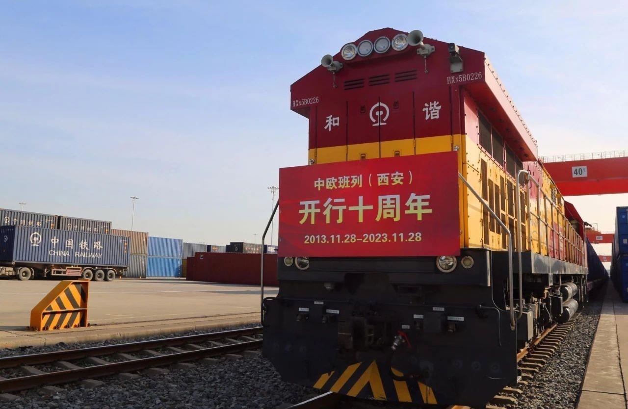 △2023年11月28日,X8155次中歐班列從西安國(guó)際港站緩緩駛出,開(kāi)往德國(guó)漢堡。