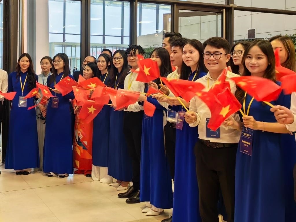 習(xí)近平總書(shū)記和夫人彭麗媛抵達(dá)國(guó)家會(huì)議中心時(shí),受到越方青年代表熱烈歡迎。