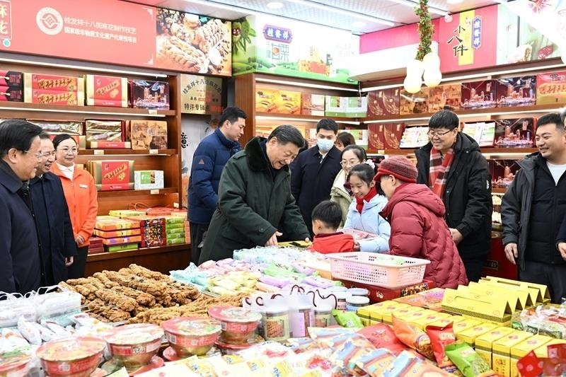 從內(nèi)蒙古錫林浩特愛民社區(qū)超市到云南昆明新春購物博覽會,再到山西平遙古城的特產(chǎn)店鋪……這些年,習近平總書記經(jīng)常在春節(jié)前到市場、超市、店鋪轉(zhuǎn)一轉(zhuǎn),察看市場供應、年貨供銷、物價運行等情況。
