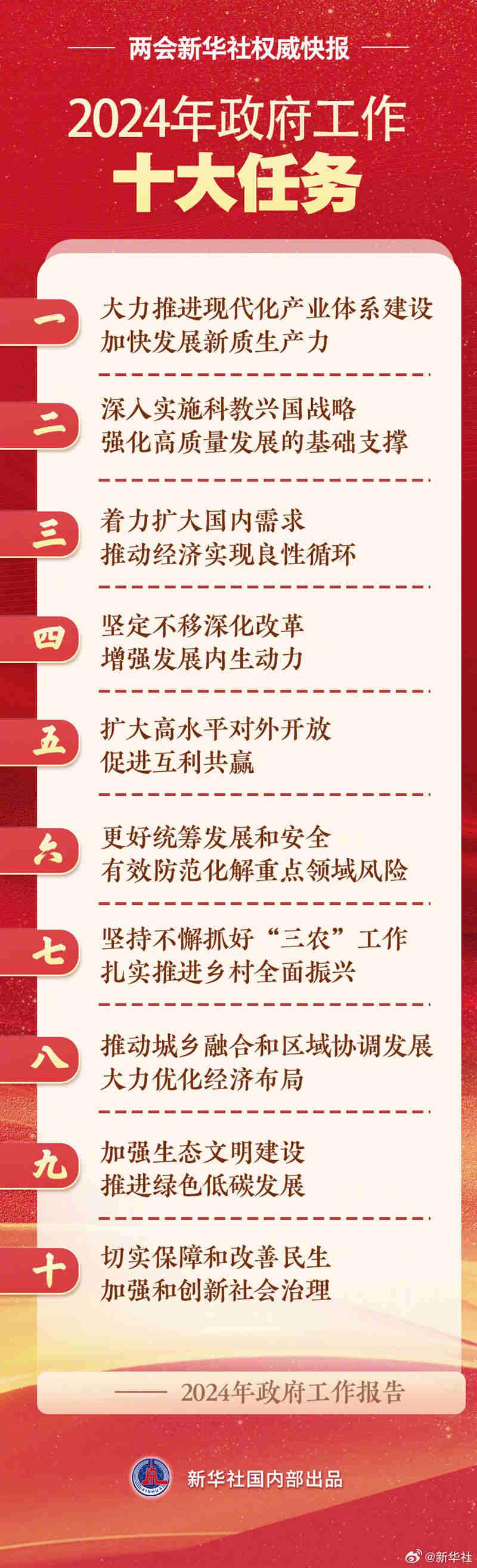 兩會新華社權(quán)威快報丨2024年政府工作十大任務(wù)