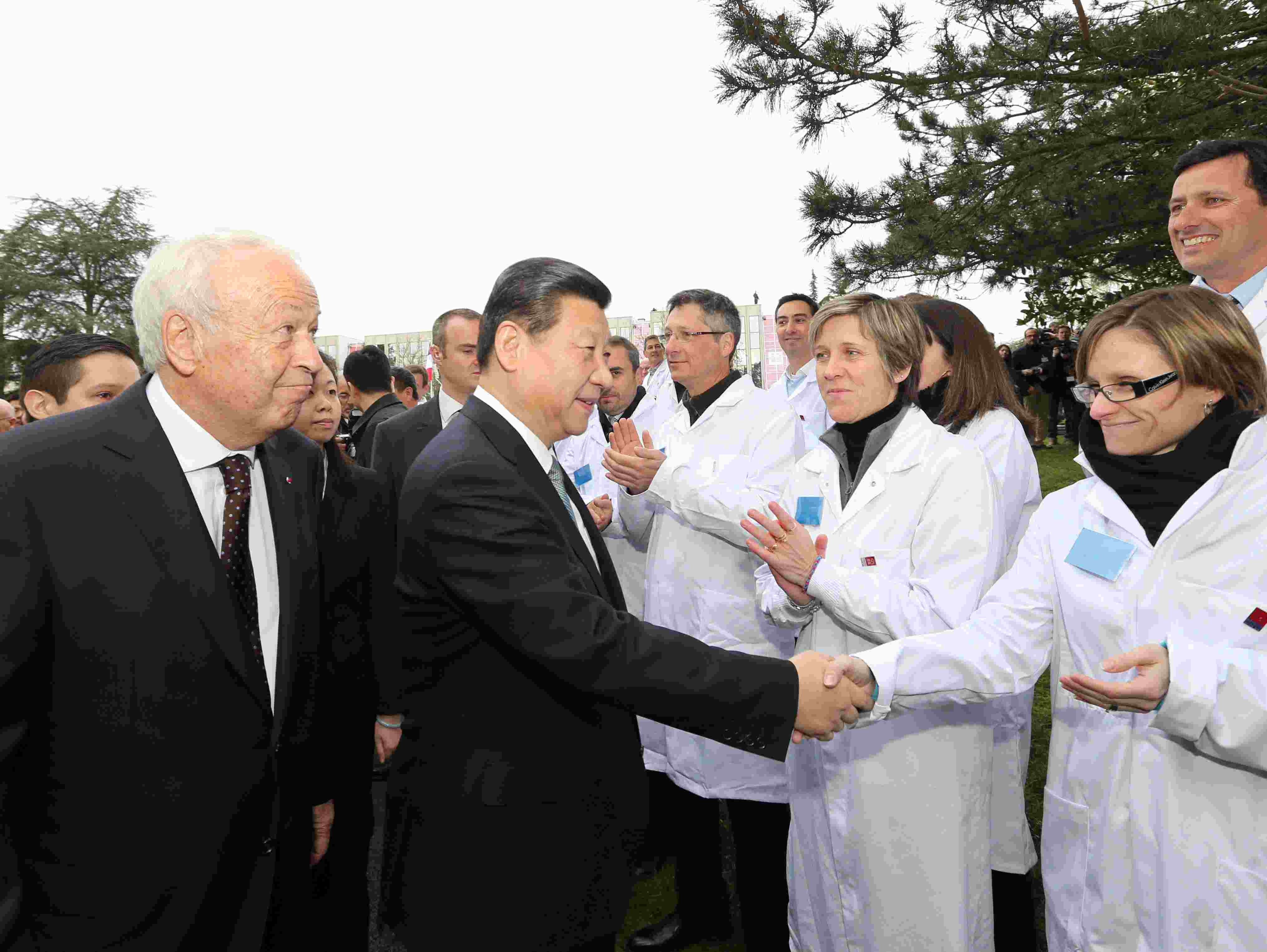 2014年3月,習(xí)近平主席訪問(wèn)法國(guó)期間,專程來(lái)到梅里埃生物科研中心。阿蘭·梅里埃率家族成員以及中心員工列隊(duì)熱烈歡迎。