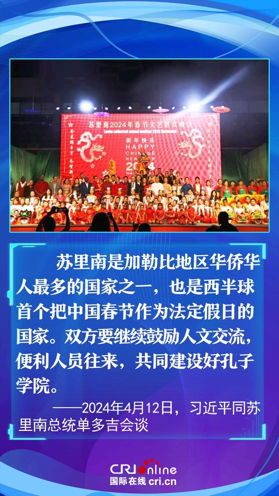 今年是中國和蘇里南建立戰(zhàn)略合作伙伴關(guān)系五周年。習(xí)近平主席在會談中以“源遠(yuǎn)流長、歷久彌堅”為中蘇友誼增添了新的注解,為推動構(gòu)建更加緊密的中蘇戰(zhàn)略合作伙伴關(guān)系指明了方向。
