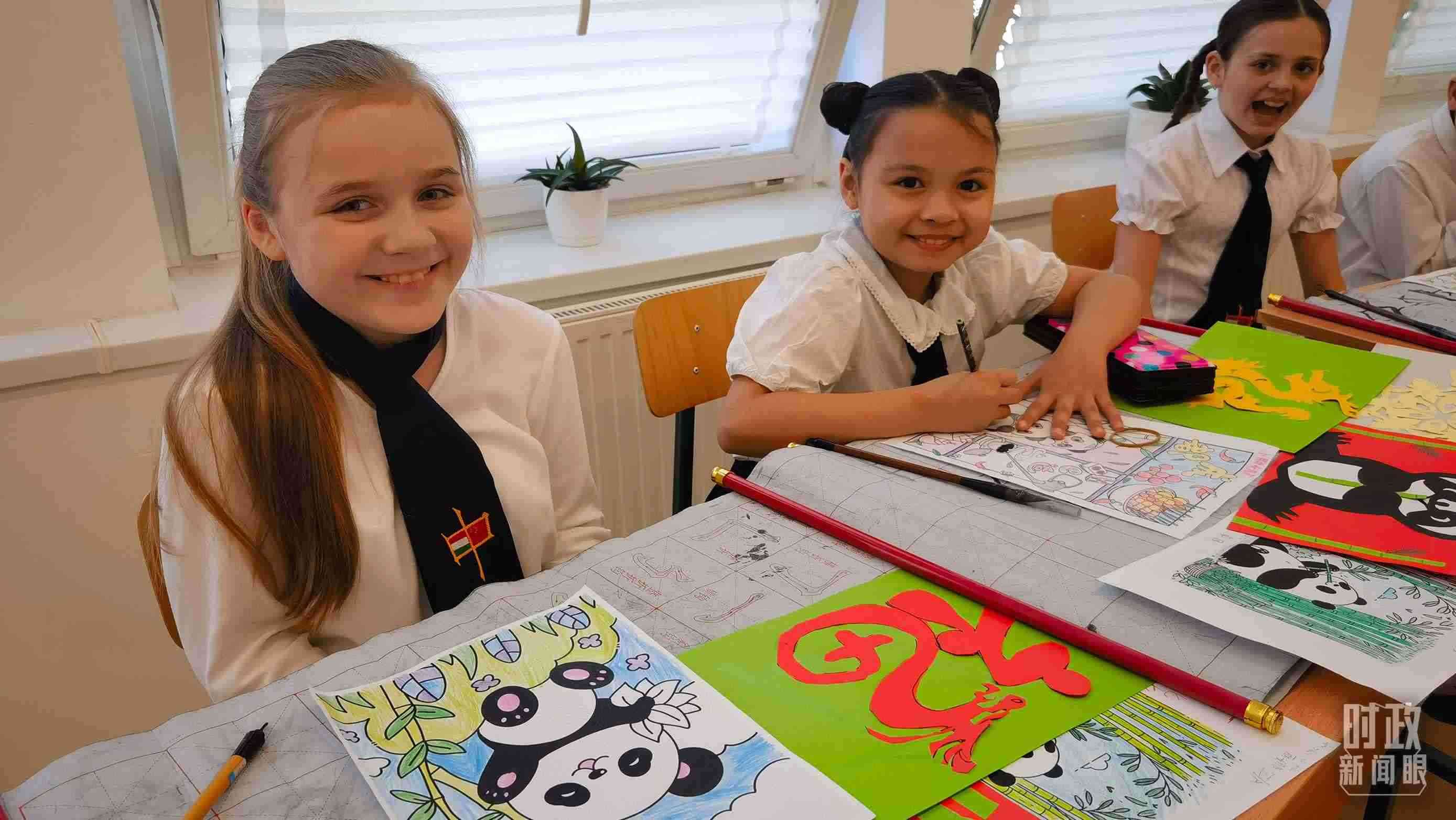 △匈中雙語學校中國傳統(tǒng)文化課堂上的孩子們。(總臺央視記者凌楓拍攝)