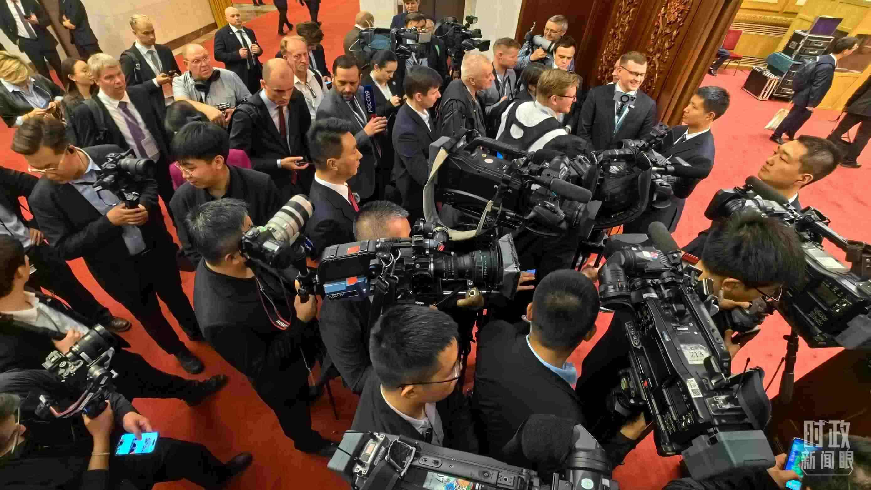 △當(dāng)天參與現(xiàn)場報道的中外記者。(總臺央視記者楊波、王子杭拍攝)