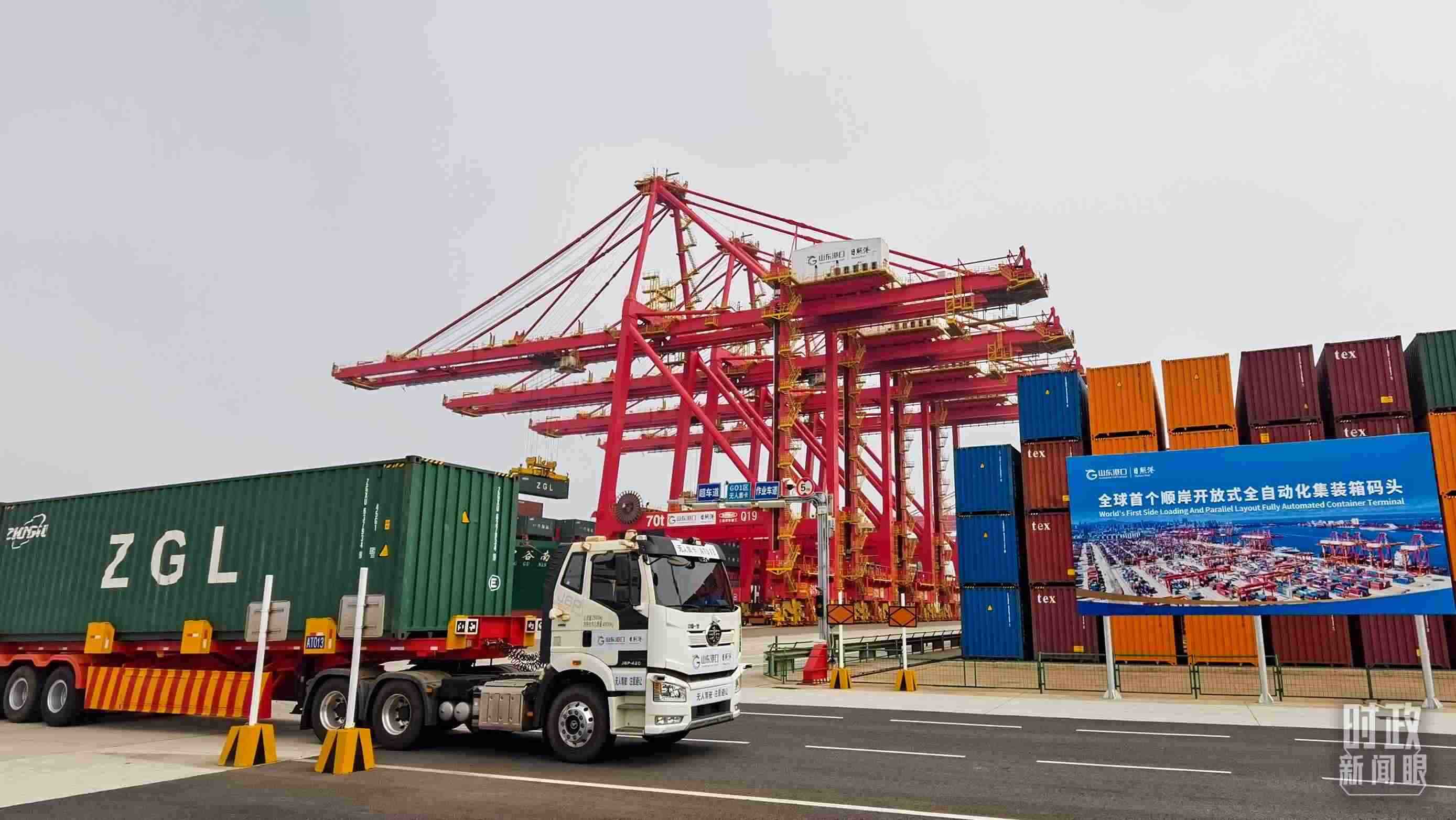 這里不僅是國家支持建設(shè)的大宗干散貨智慧綠色示范港口,還建成全球首個(gè)順岸開放式全自動(dòng)化集裝箱碼頭,單機(jī)效率提升50%,每年可削減碳排放9000多噸。