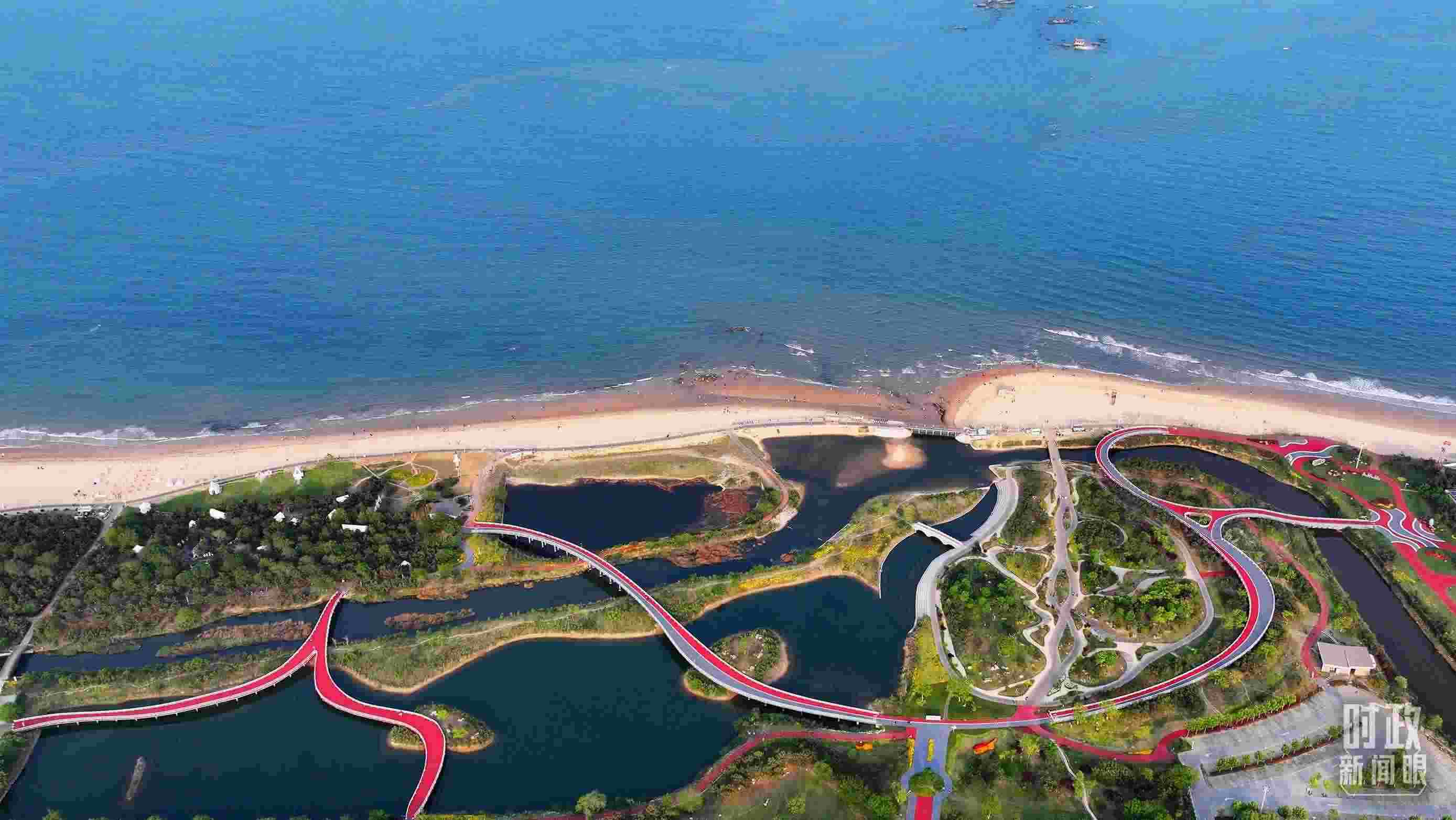 這是一條功能復(fù)合、活力多元的陽光海岸帶,串聯(lián)起沿海岸線的萬平口景區(qū)、海洋公園、海洋美學(xué)館、桃花島景區(qū)等13個(gè)景區(qū),以及王家皂、張家臺(tái)等8個(gè)沿海民俗村,還建設(shè)有觀景平臺(tái)、運(yùn)動(dòng)步道、游客休憩廣場等。