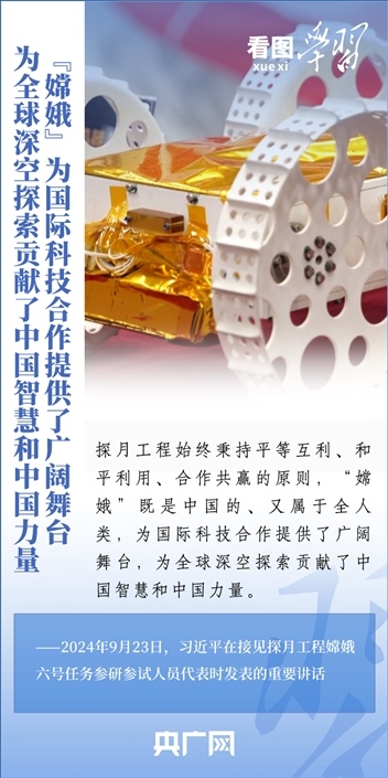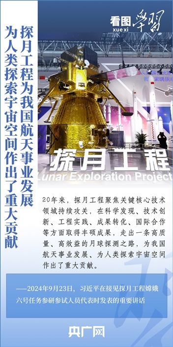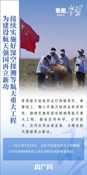 中國(guó)探月工程成果凝結(jié)著我國(guó)幾代航天人的智慧和心血。9月23日,習(xí)近平總書記接見探月工程嫦娥六號(hào)任務(wù)參研參試人員代表并發(fā)表重要講話。總書記高度肯定嫦娥六號(hào)任務(wù)成功的重要意義,以及探月工程為我國(guó)航天事業(yè)發(fā)展、為人類探索宇宙空間作出的重大貢獻(xiàn),勉勵(lì)航天戰(zhàn)線工作者再接再厲、乘勢(shì)而上,為建設(shè)航天強(qiáng)國(guó)再立新功。一起來(lái)學(xué)習(xí)!