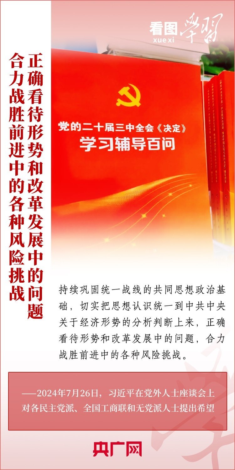 中共中央7月26日在中南海召開黨外人士座談會(huì),就當(dāng)前經(jīng)濟(jì)形勢(shì)和下半年經(jīng)濟(jì)工作聽取各民主黨派中央、全國工商聯(lián)負(fù)責(zé)人和無黨派人士代表的意見和建議。習(xí)近平總書記主持座談會(huì)并發(fā)表重要講話,對(duì)做好下半年經(jīng)濟(jì)工作作出重要部署,并對(duì)黨外人士提出3點(diǎn)希望。一起來學(xué)習(xí)!