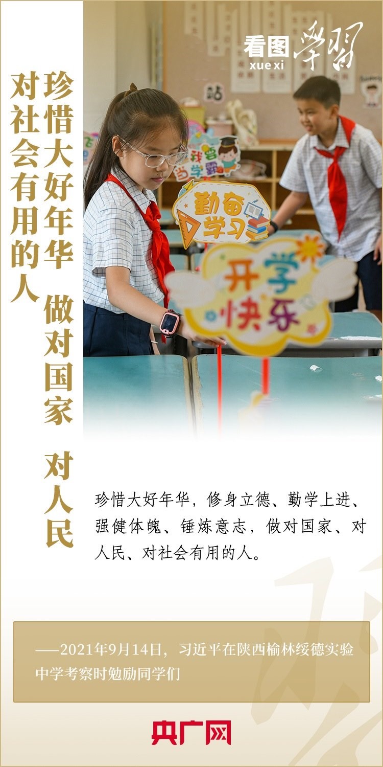 “少年兒童是祖國的未來?!币恢币詠?,習(xí)近平總書記高度重視和關(guān)心青少年的健康成長。每每走到校園和學(xué)生們中間,總書記總會與他們談學(xué)習(xí)、談理想、談成長,鼓勵他們努力為自己贏得人生出彩的機會,做對國家、對人民、對社會有用的人。又是一年開學(xué)季,讓我們一起重溫總書記對莘莘學(xué)子的殷切期望。一起來學(xué)習(xí)!