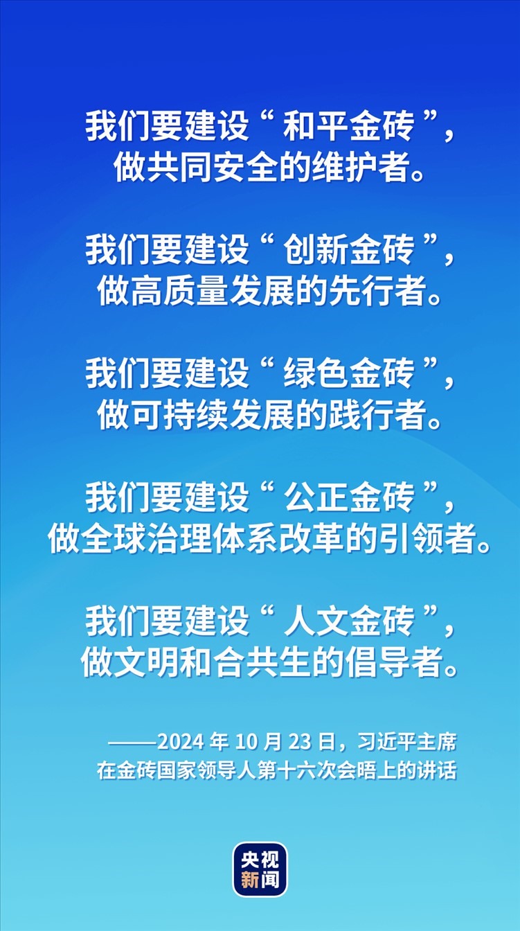 對于如何推動“大金磚合作”高質(zhì)量發(fā)展,習近平主席提出五點建議——建設“和平金磚”“創(chuàng)新金磚”“綠色金磚”“公正金磚”“人文金磚”,攜手更多“全球南方”國家共同推動構建人類命運共同體。