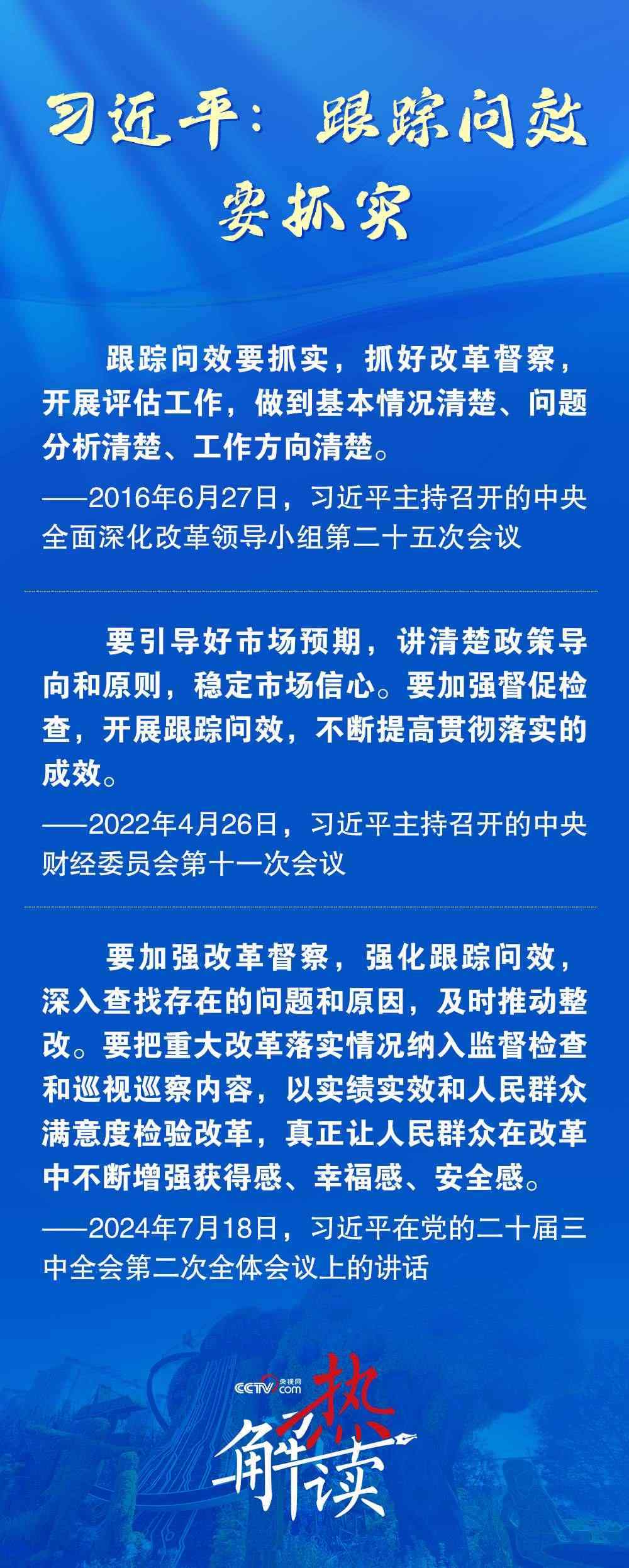 一分部署,九分落實。跟蹤問效是對改革政策實施過程持續(xù)監(jiān)督和評估的機制,也是總書記特別要求堅持的改革方法。