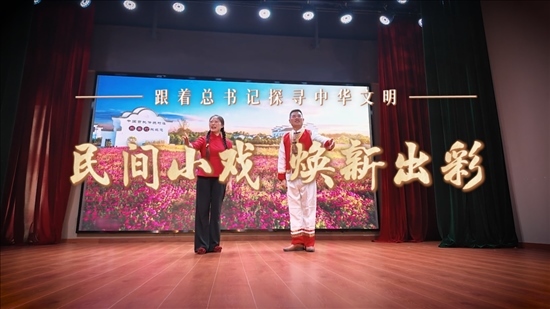 “復興路上同追夢,神州處處艷陽天……”2019年,習近平總書記來到河南信陽光山縣文殊鄉(xiāng)東岳村考察,張秀芳和丈夫就將這出新編花鼓戲唱給了總書記聽。