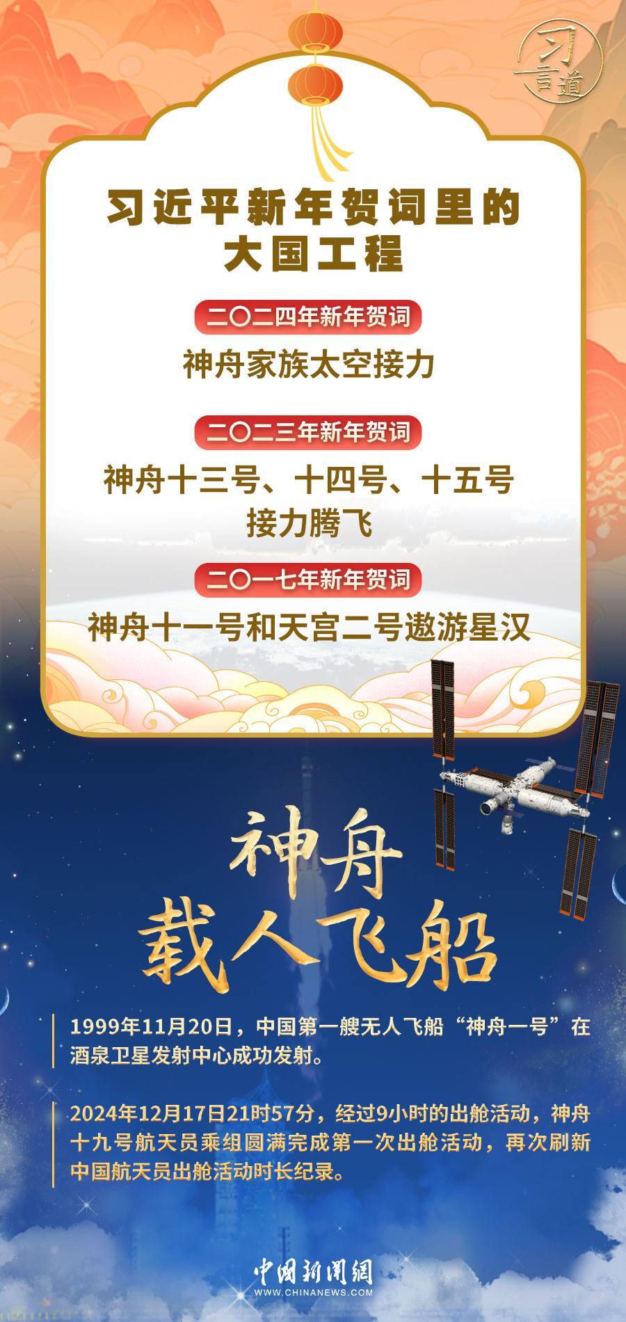 習近平主席在二〇二五年新年賀詞中,為中國人逐夢星辰大海的豪情壯志喝彩。新年之際,讓我們一起重溫習近平主席在新年賀詞中點贊的大國工程。