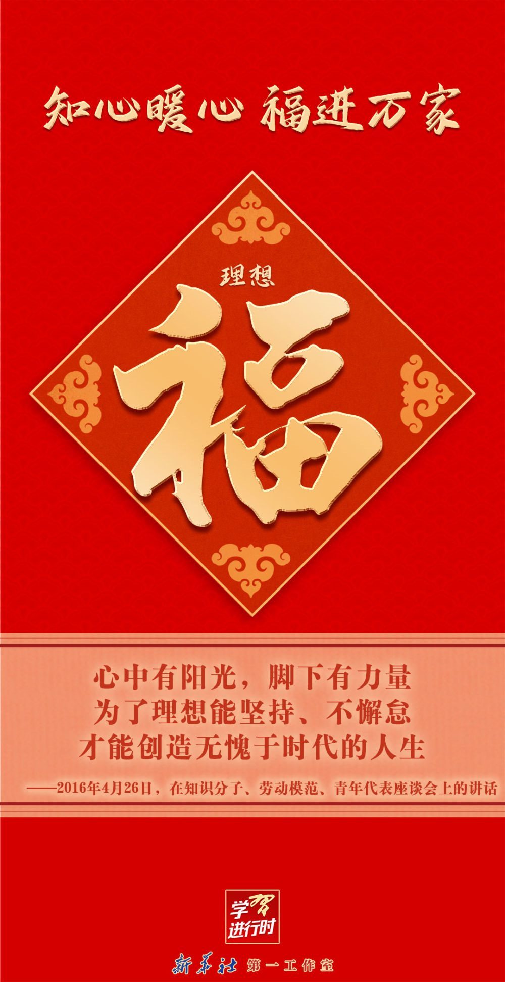 【學(xué)習(xí)進(jìn)行時(shí)】迎春納福,是中國人的春節(jié)習(xí)俗。一個(gè)“?!弊郑休d著中國人對(duì)美好生活的向往。這些年,習(xí)近平總書記很多知心話道出了我們對(duì)幸福的追求。乙巳蛇年春節(jié)來臨之際,一起重溫。