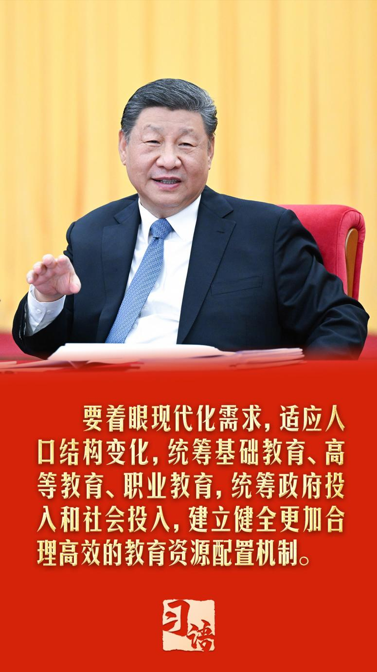 在3月6日的政協(xié)聯(lián)組會(huì)上,總書(shū)記謀深思遠(yuǎn):“要著眼現(xiàn)代化需求,適應(yīng)人口結(jié)構(gòu)變化,統(tǒng)籌基礎(chǔ)教育、高等教育、職業(yè)教育,統(tǒng)籌政府投入和社會(huì)投入,建立健全更加合理高效的教育資源配置機(jī)制?!?/p>