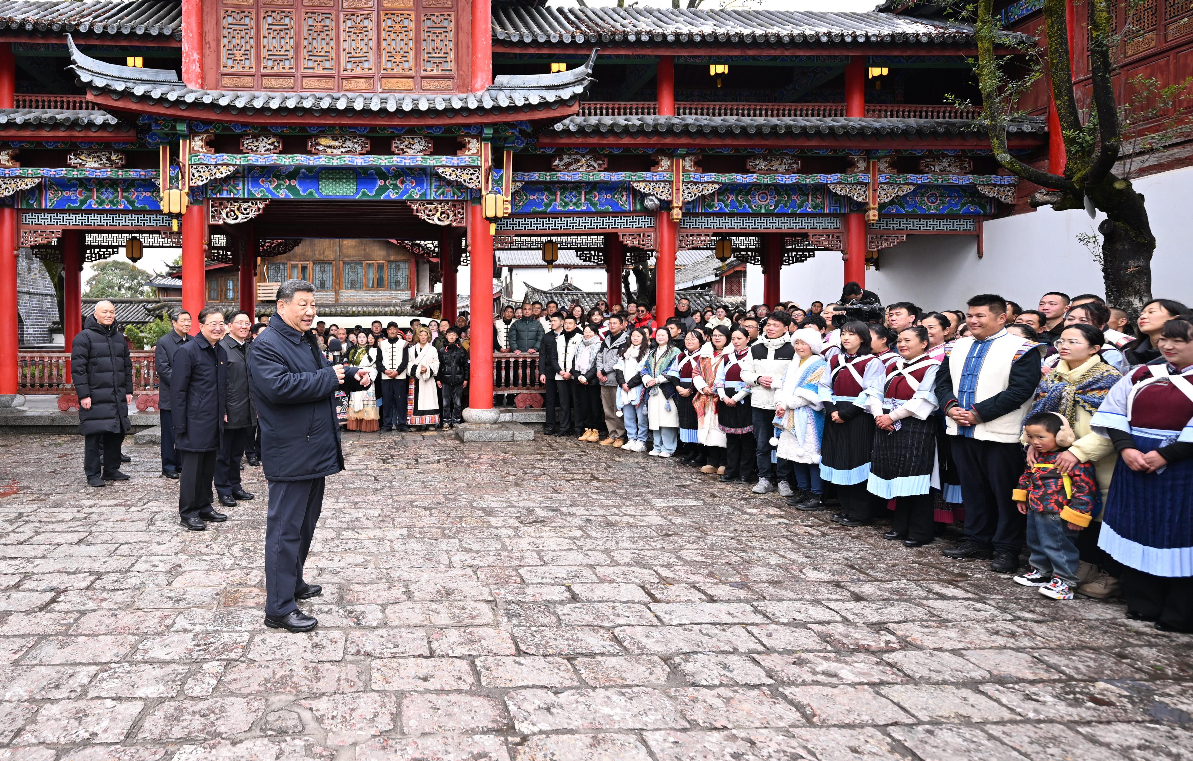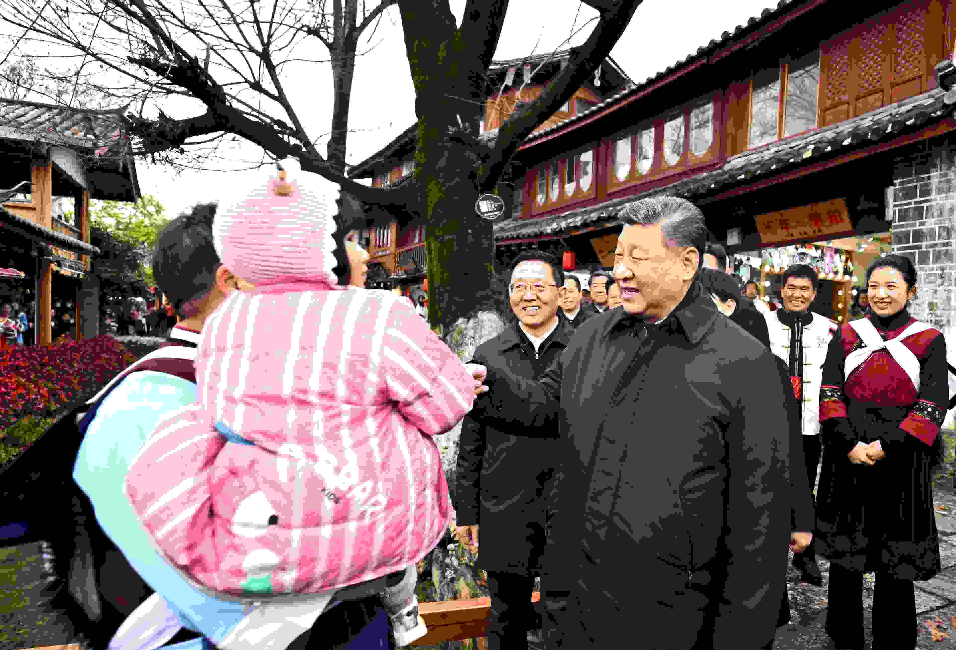 習(xí)近平總書記19日下午來到云南麗江古城,沿著石板路邊走邊看。當(dāng)?shù)鼐用窈脱赝居慰褪譄崆榈叵蚩倳泦柡?,?xí)近平不時(shí)停下腳步同大家親切交流。習(xí)近平說,這里的文化、風(fēng)光、民俗都非常吸引人,文旅融合促進(jìn)了經(jīng)濟(jì)發(fā)展。文旅產(chǎn)業(yè)要走一條持續(xù)、健康的發(fā)展之路。希望你們的生活幸福安康,就像納西族的大姓“和”姓一樣,和和美美。