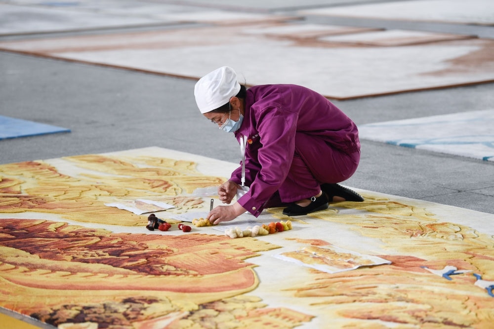青海湖畔翱翔的水鳥(niǎo)、雪山下起舞的藏族女孩……在圣源地毯集團(tuán)有限公司車(chē)間內(nèi),手持電織槍的女工們,正按照設(shè)計(jì)圖織出精美立體的圖案。