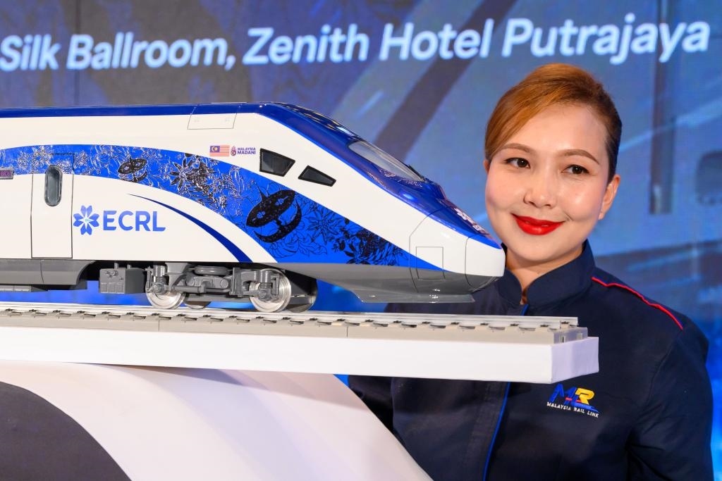 2024年12月18日,在馬來西亞普特拉賈亞,模特與新的動(dòng)車組模型合影。新華社發(fā)(張紋綜攝)