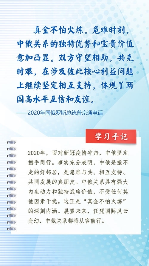 我們一起來(lái)學(xué)習(xí)品讀這些飽含哲思的論述,從中感悟新時(shí)代中俄關(guān)系在復(fù)雜的外部環(huán)境下堅(jiān)毅前行之道,感悟習(xí)近平主席作為大黨大國(guó)領(lǐng)袖、世界級(jí)領(lǐng)袖的時(shí)代擔(dān)當(dāng)與天下情懷。