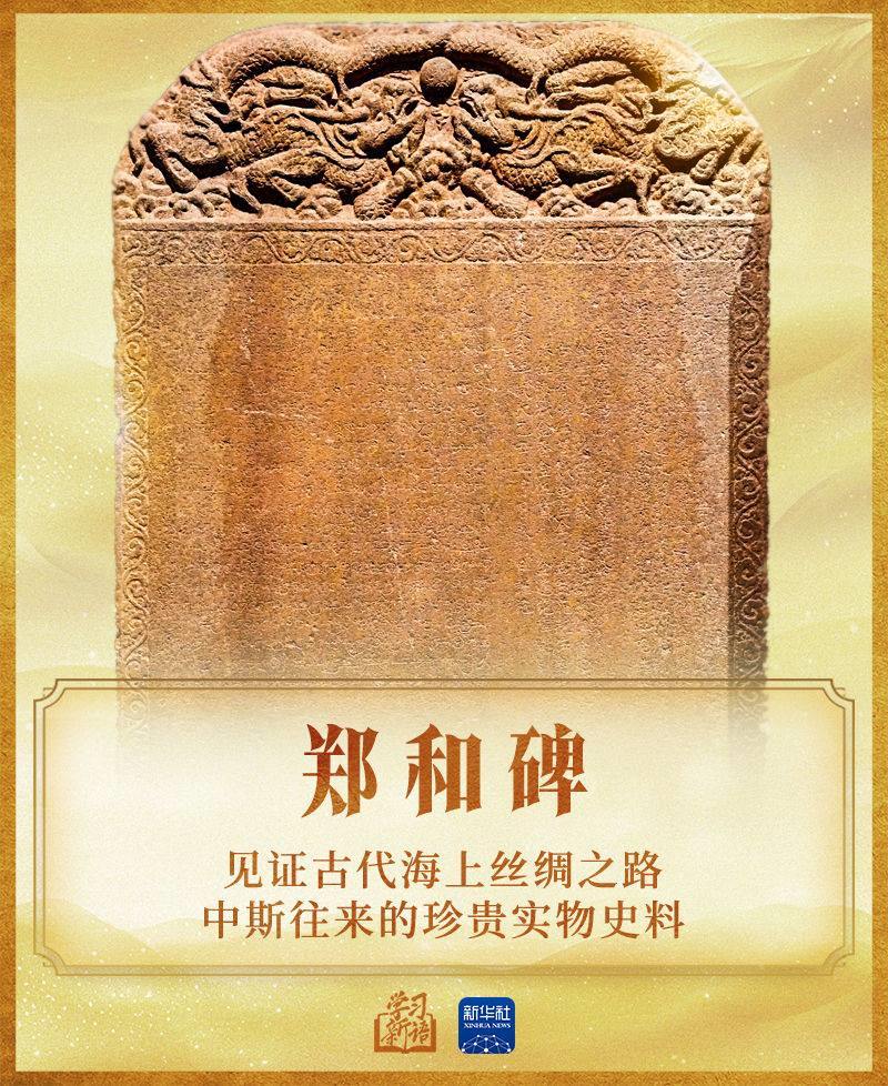 鄭和碑(全稱“鄭和《布施錫蘭山佛寺碑》”)立于公元1409年鄭和第二次抵達斯里蘭卡后。此碑正面分別有中文、泰米爾文、波斯文三種陰刻文字,記載了600多年前鄭和赴錫蘭(今斯里蘭卡),向島上佛教寺廟布施財物供奉佛祖之事。它是見證古代海上絲綢之路中斯往來的珍貴實物史料。