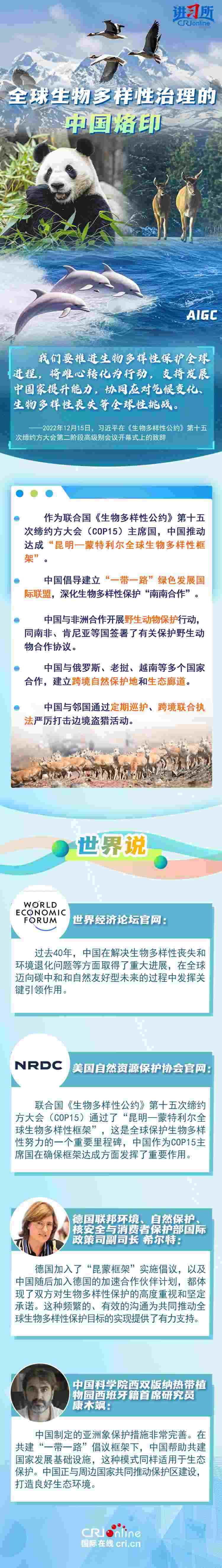 “心往一處想、勁往一處使,共建地球生命共同體?!弊鳛樽钤绾炇?、批準(zhǔn)《生物多樣性公約》的締約方之一,生物多樣性保護(hù)已經(jīng)上升為中國的國家發(fā)展戰(zhàn)略。國際人士表示,中國的一系列舉措體現(xiàn)出對生態(tài)環(huán)境保護(hù)的堅定決心,同時,中國依托共建“一帶一路”倡議等國際合作機(jī)制,為推動全球生物多樣性保護(hù)提供了有力支持,在邁向自然友好型未來的過程中發(fā)揮關(guān)鍵的引領(lǐng)作用。