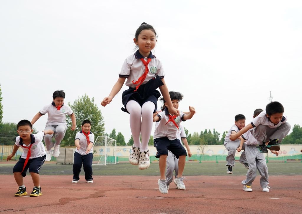 6月27日,在北京第二實驗小學平谷分校,二年級(2)班的學生上體育課。新華社記者任超攝