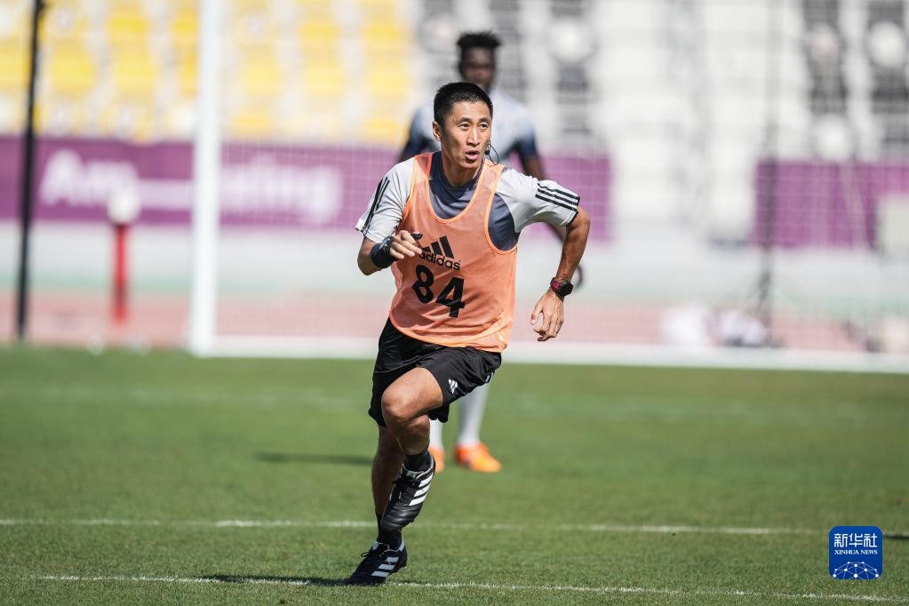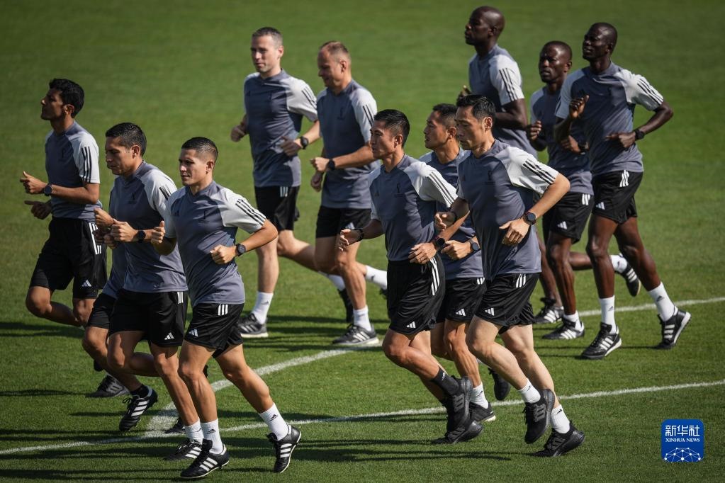 當(dāng)日,入選2022年卡塔爾世界杯裁判員名單的中國(guó)裁判馬寧、曹奕與施翔在卡塔爾體育俱樂(lè)部球場(chǎng)進(jìn)行訓(xùn)練。