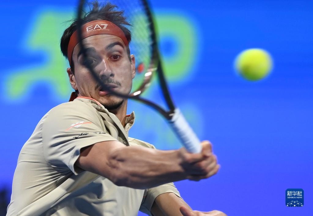 2月20日,索內(nèi)戈在比賽中回球。新華社發(fā)(尼庫(kù)攝)