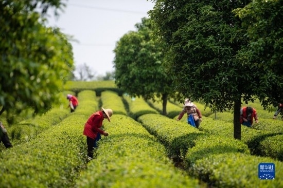4月11日,在長沙望城烏山貢茶基地,茶農(nóng)在采摘春茶。