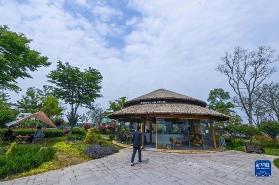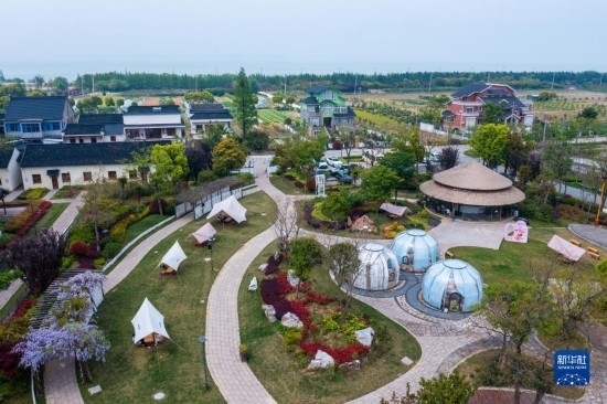 4月11日拍攝的伍浦村漁耕文化園的陶灣里鄉(xiāng)村咖啡店以及鄉(xiāng)村露營(yíng)地(無(wú)人機(jī)照片)。