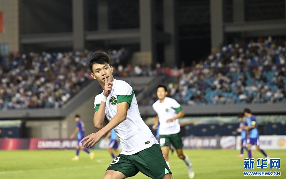 ??6月15日,浙江俱樂部U21隊(duì)球員王鈺棟在比賽中慶祝進(jìn)球。