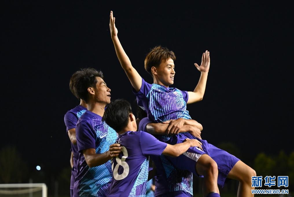 ??6月15日,天津津門虎U21隊(duì)球員王忠民(右一)在比賽中與隊(duì)友慶祝進(jìn)球。