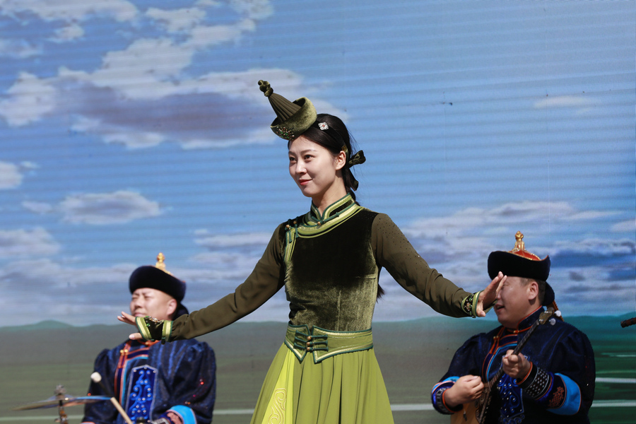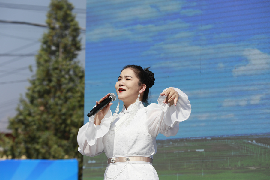 烏蘭牧騎隊(duì)員現(xiàn)場表演 北疆新聞記者 張楊攝影