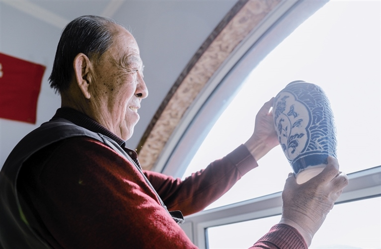 隨后,他走進(jìn)“饅頭窯”旁邊的一口窯洞,這是當(dāng)時(shí)張家的一間手工作坊,揉泥、拉坯、上釉等一系列制作陶瓷的工序都是在這里完成?!拔揖统錾谶@個(gè)村子,已經(jīng)是張家瓷藝的第九代傳人了。作為中國磁州窯譜系,清水河黑礬溝瓷藝生產(chǎn)歷史至少已有800年?!标P(guān)于這項(xiàng)非遺的歷史故事,張選老人向記者娓娓道來:大約400年前,他們張家走西口從山西來到清水河謀生,當(dāng)時(shí)清水河黑礬溝有一家姓杜的人家做陶瓷營生,張家的先人在杜家打工,大概這樣打工做了三輩人吧,杜家忽然不做了,搬離了黑礬溝,他們張家便把杜家的產(chǎn)業(yè)買了下來繼續(xù)做?!澳莻€(gè)時(shí)候黑礬溝生產(chǎn)的瓷器都與人們生活息息相關(guān),比如腌菜缸、水甕、碗盤等,一個(gè)家庭手工作坊一天能生產(chǎn)500個(gè)碗呢,生意很好,人們靠做這個(gè)營生也過上了不錯(cuò)的生活?!睆堖x回憶著清水河瓷藝鼎盛時(shí)期的場景。上個(gè)世紀(jì)70年代,由于交通、技術(shù)等原因,黑礬溝燃燒了幾百年的窯火熄滅,傳統(tǒng)“饅頭窯”被正式廢棄,轉(zhuǎn)移到窯溝鄉(xiāng)后手工作坊變成了機(jī)械化生產(chǎn),這也讓清水河的陶瓷名聲大噪。當(dāng)時(shí),在窯溝鄉(xiāng)一帶,從事陶瓷生產(chǎn)的有近萬人,陶瓷業(yè)成為清水河支柱產(chǎn)業(yè)。