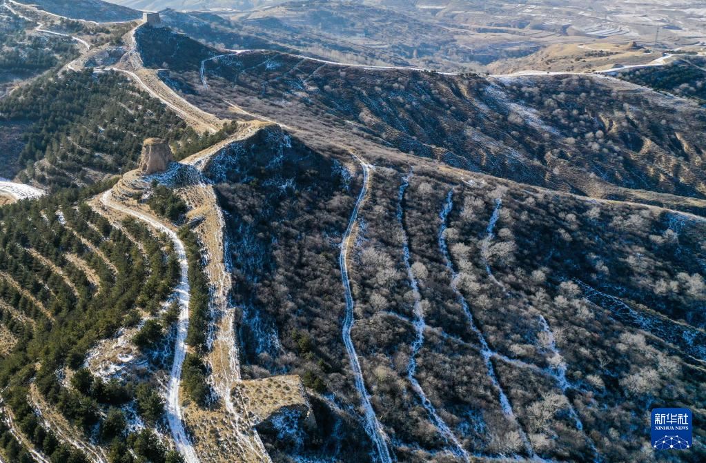 這是1月16日拍攝的內(nèi)蒙古清水河縣栜木塔長城(無人機照片)。