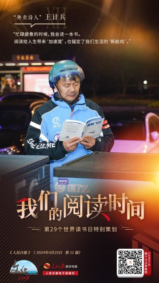 “我的外賣箱里總會(huì)放一本書,在等外賣的間隙或者訂單空閑的時(shí)候看,現(xiàn)在主要在手機(jī)上閱讀?!比缃?,王計(jì)兵已創(chuàng)作5000多首詩(shī)歌,出版3本詩(shī)集,還在進(jìn)行非虛構(gòu)寫作。他說(shuō):“閱讀給我的人生帶來(lái)‘加速度’,為忙碌的生活錨定方向感?!?/p>