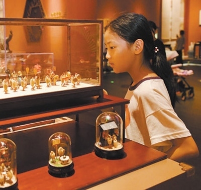 游客在中國大運(yùn)河非物質(zhì)文化遺產(chǎn)展示館內(nèi)參觀。圖為新華社記者牟宇攝