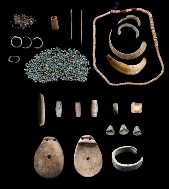 西藏康馬瑪不錯(cuò)遺址出土的第二期遺物(石質(zhì)、骨質(zhì)、金屬裝飾品,骨針、滑石珠、紅玉髓、玻璃珠等)。(全國(guó)十大考古新發(fā)現(xiàn)活動(dòng)辦公室供圖)