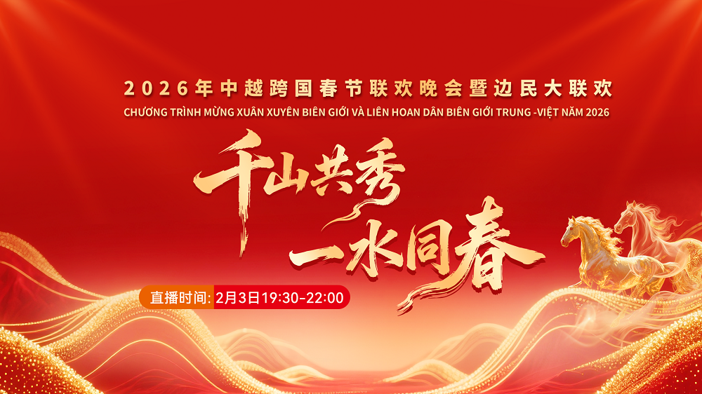 【直播簡介】2月2日至2月3日,2026年中越跨國春節(jié)聯(lián)歡晚會暨邊民大聯(lián)歡活動相繼在越南老街省、中國云南省紅河州舉行。兩國人民以文化為橋梁,以友誼為紐帶,進(jìn)一步鞏固中越地方友好合作關(guān)系,構(gòu)建具有戰(zhàn)略意義的中越命運(yùn)共同體。2月3日晚19:30至22:00,中央廣播電視總臺央視頻將聯(lián)動25家主流媒體,現(xiàn)場直播在紅河州河口縣舉行的2026年中越跨國春節(jié)聯(lián)歡晚會,帶您沉浸式體驗兩國藝術(shù)家跨越國界的精彩文化盛宴,感受中越兩國人民“同飲一江水、攜手共發(fā)展”的深情厚誼,共度一個喜慶祥和、心手相連的跨國春夜。