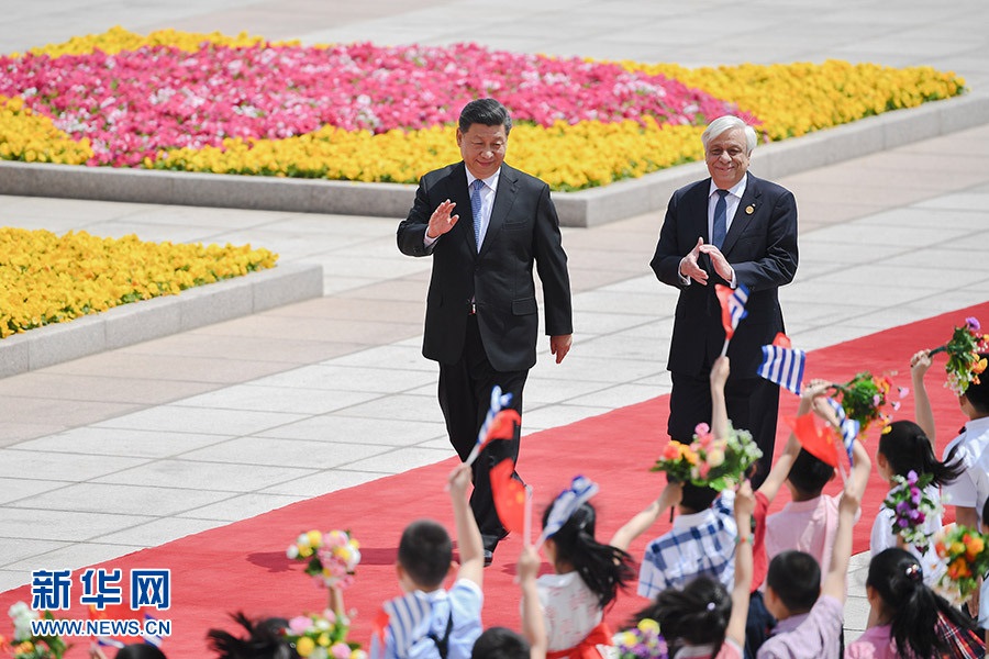 國家主席習(xí)近平14日在人民大會堂同希臘總統(tǒng)帕夫洛普洛斯舉行會談。