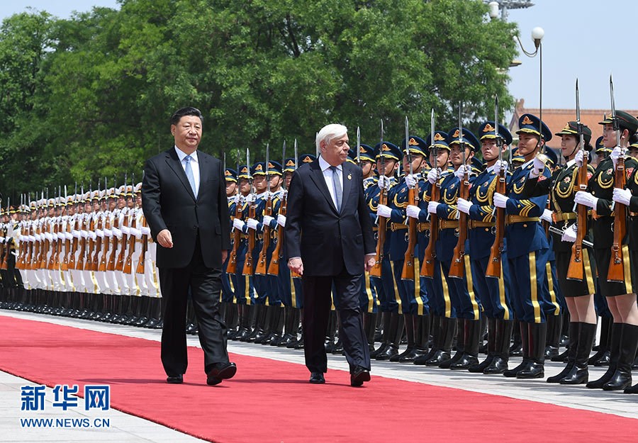 5月14日,國家主席習(xí)近平在北京人民大會堂同希臘總統(tǒng)帕夫洛普洛斯舉行會談。這是會談前,習(xí)近平在人民大會堂東門外廣場為帕夫洛普洛斯舉行歡迎儀式。 新華社記者 燕雁 攝
