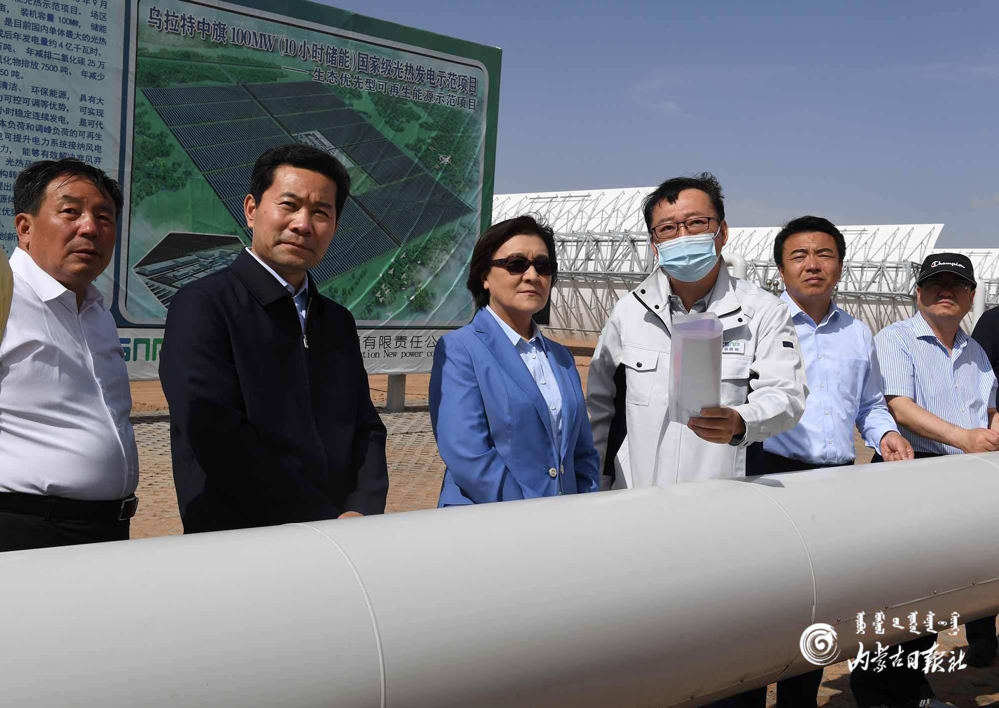 6月8日,自治區(qū)黨委副書記、自治區(qū)主席布小林在巴彥淖爾市烏拉特中旗中核龍騰100兆瓦(10小時儲能)光熱發(fā)電示范項目施工現場調研,了解項目建設進度。內蒙古日報社融媒體記者 韓卿立攝
