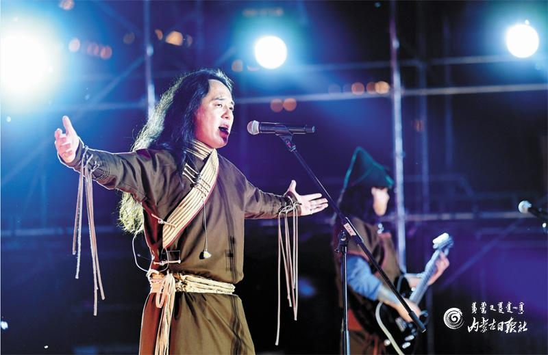 8月16日晚,助演嘉賓藍(lán)野樂(lè)隊(duì)激情獻(xiàn)唱。內(nèi)蒙古日?qǐng)?bào)記者 王磊 懷特烏勒斯 攝