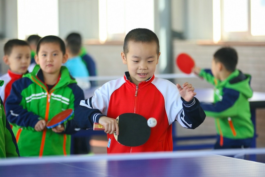 同學(xué)們正在練習(xí)乒乓球 彭瑞誠 攝影