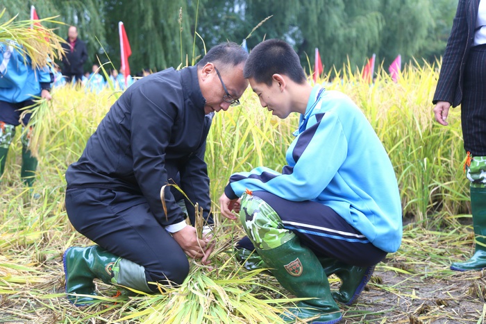 在科右前旗大壩溝中學(xué)水稻“收割節(jié)”的活動現(xiàn)場,調(diào)研組一行拿起鐮刀,穿起水鞋,來到水稻田里,與學(xué)生們一起體驗收割水稻帶來的成就感和幸福感。調(diào)研人員表示:對于不愁吃、不愁穿的年輕一代而言,僅僅從勞動謀生功能的角度去思考勞動教育是遠(yuǎn)遠(yuǎn)不夠的,他們最匱乏的是精神層面自我實現(xiàn)的意義感和價值感。通過深入實際,參與勞動,創(chuàng)造價值,這樣全流程的勞動實踐,才能深切領(lǐng)會“幸福是奮斗出來的”內(nèi)涵與意義,才能養(yǎng)成正確的勞動價值觀和良好勞動品質(zhì)。